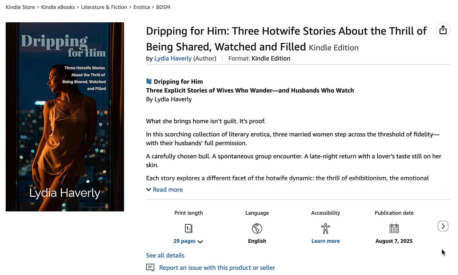 I got an email from Amazon at 1:36 a.m. ET, informing me that Dripping for Him is now live on Kindle and Kindle Unlimited—my first published collection of erotic short stories (All of which appeared here, originally, on Smutstack), and a filthy little milestone I never would have reached without this Substack, and you, smutty readers and writers.