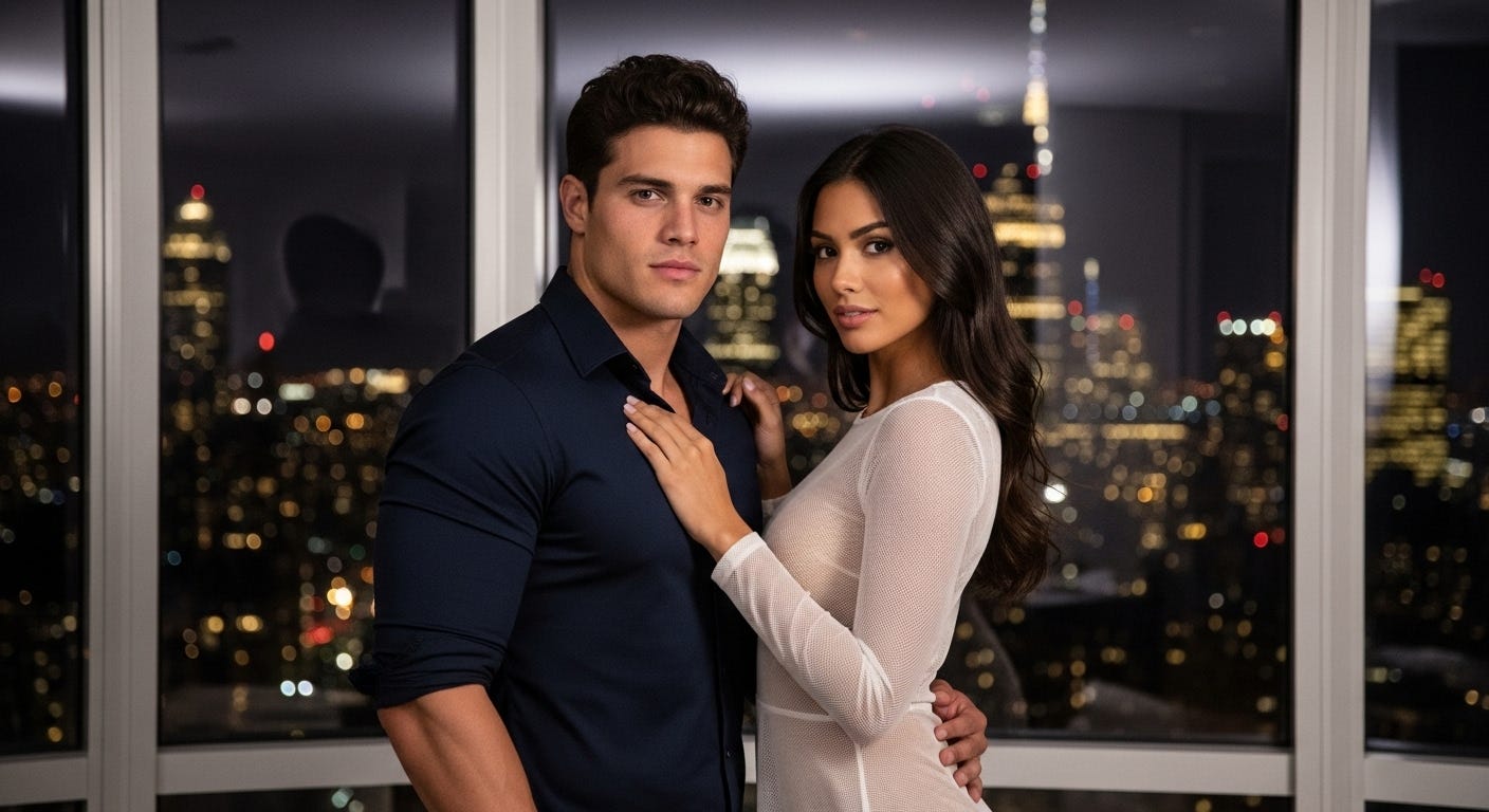 Their loft gleamed with glass and leather, lights pouring in from the street, like a reminder the city is watching.
