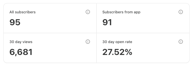 Less than two weeks ago, I published my very first post here. I was hoping a handful of people might find my stories and maybe leave a comment or two. Instead, 95 of you have joined me—reading, sharing, and racking up over 6,600 views in the very first month. That’s more than I ever dreamed possible for this strange, intimate corner of Substack.